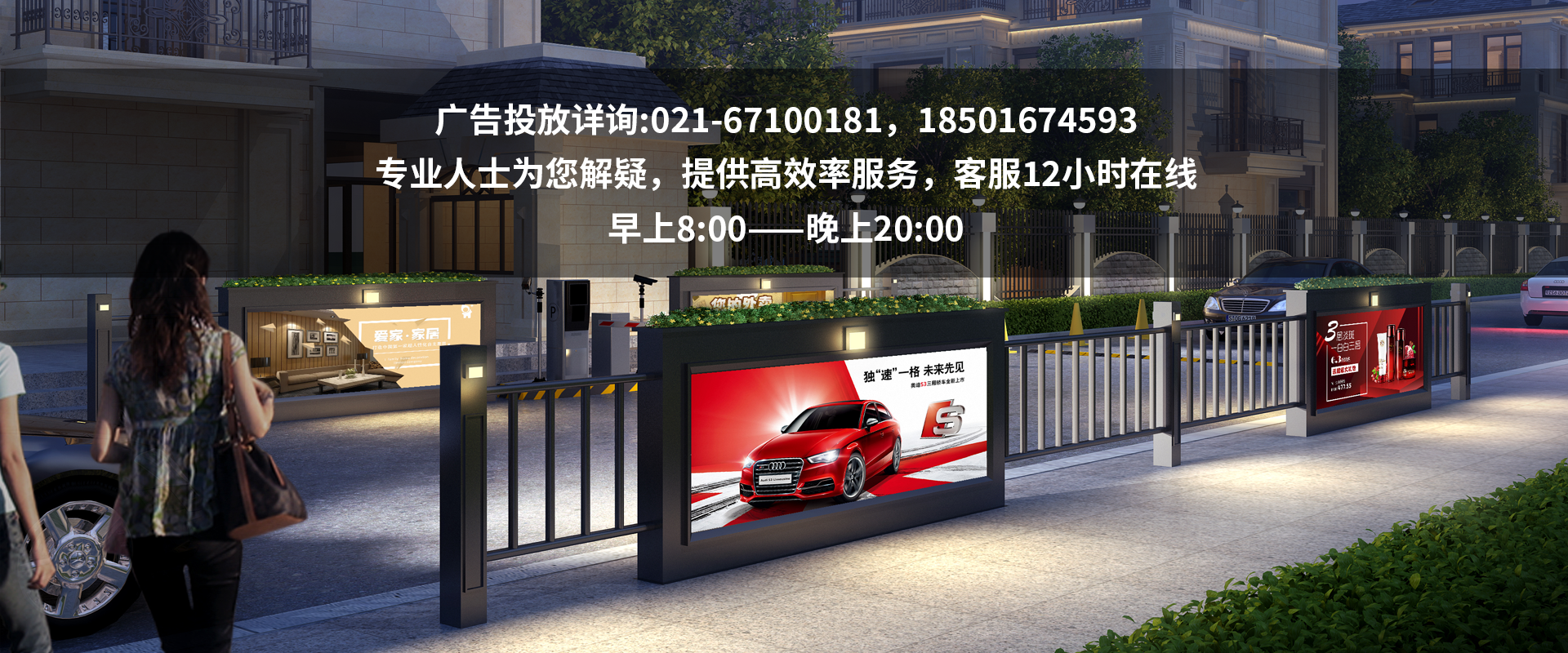 我們的廣告媒體位于社區(qū)和商場(chǎng)的主出入口,無(wú)論是行人、汽車(chē)進(jìn)出還是沿街車(chē)流、人流都能精準(zhǔn)曝光。